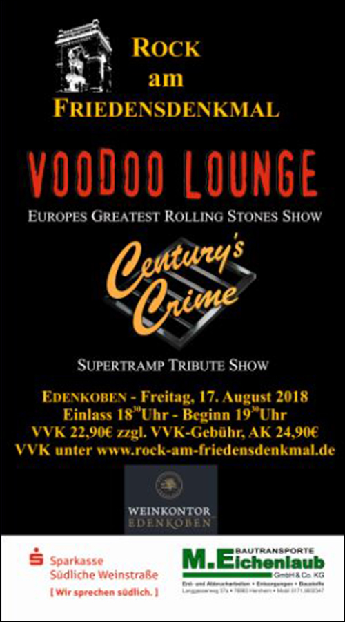 MIT VOODOO LOUNGE UND CENTURY'S CRIME AM FREITAG UND IRON MAIDNEM UND WHITESHAKE AM SAMSTAG